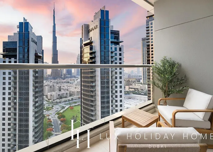 Lux The Burj Khalifa Downtown View Studio 2 biedt uitzicht op de stad en heeft een balkon uitgerust met airconditioning. Daarnaast vindt u er een badkuip.